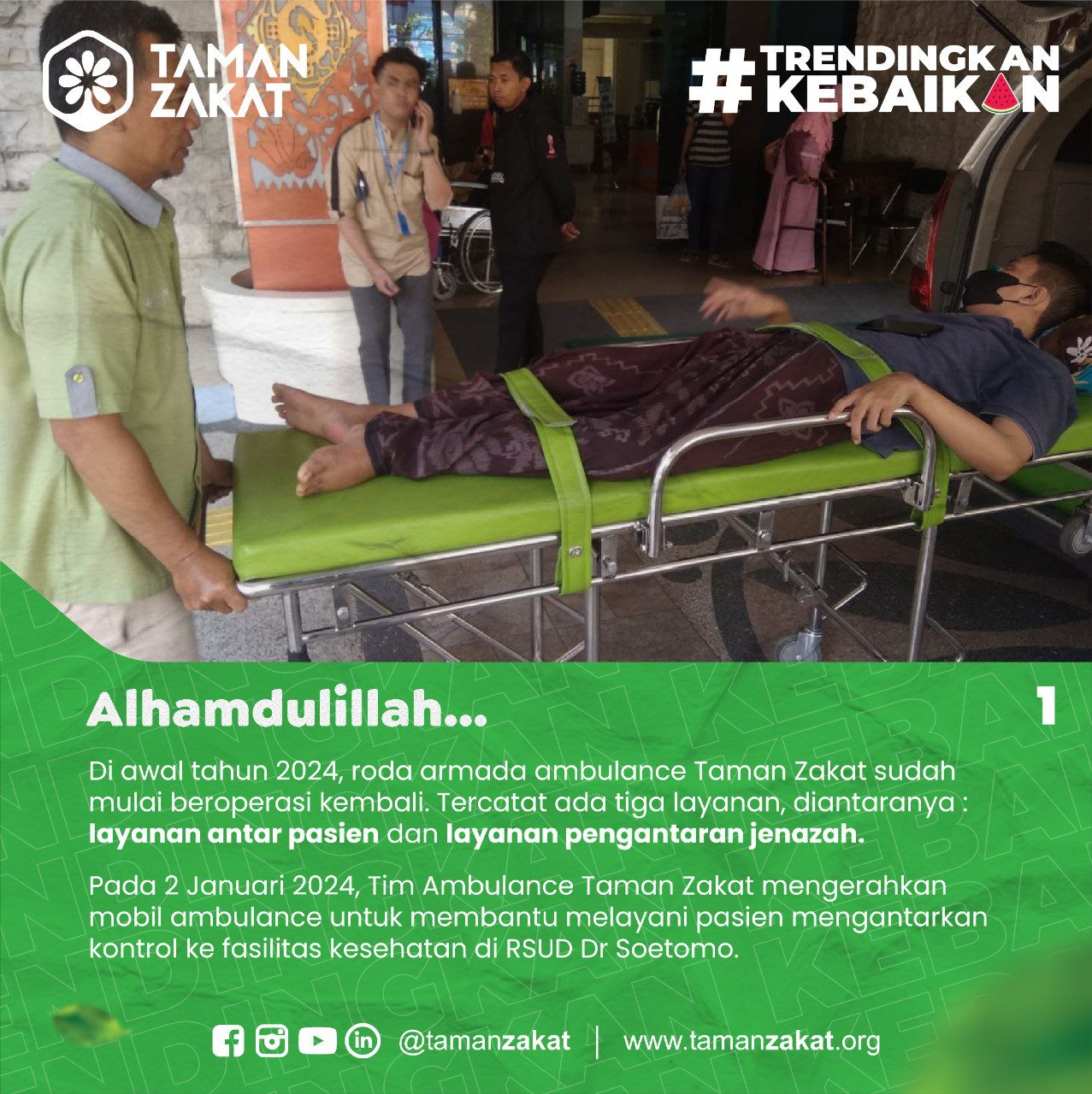 Taman Zakat melalui program Infak operasional dan atau wakaf Ambulance Gratis memfasilitasi layanan kesehatan yang meliputi: